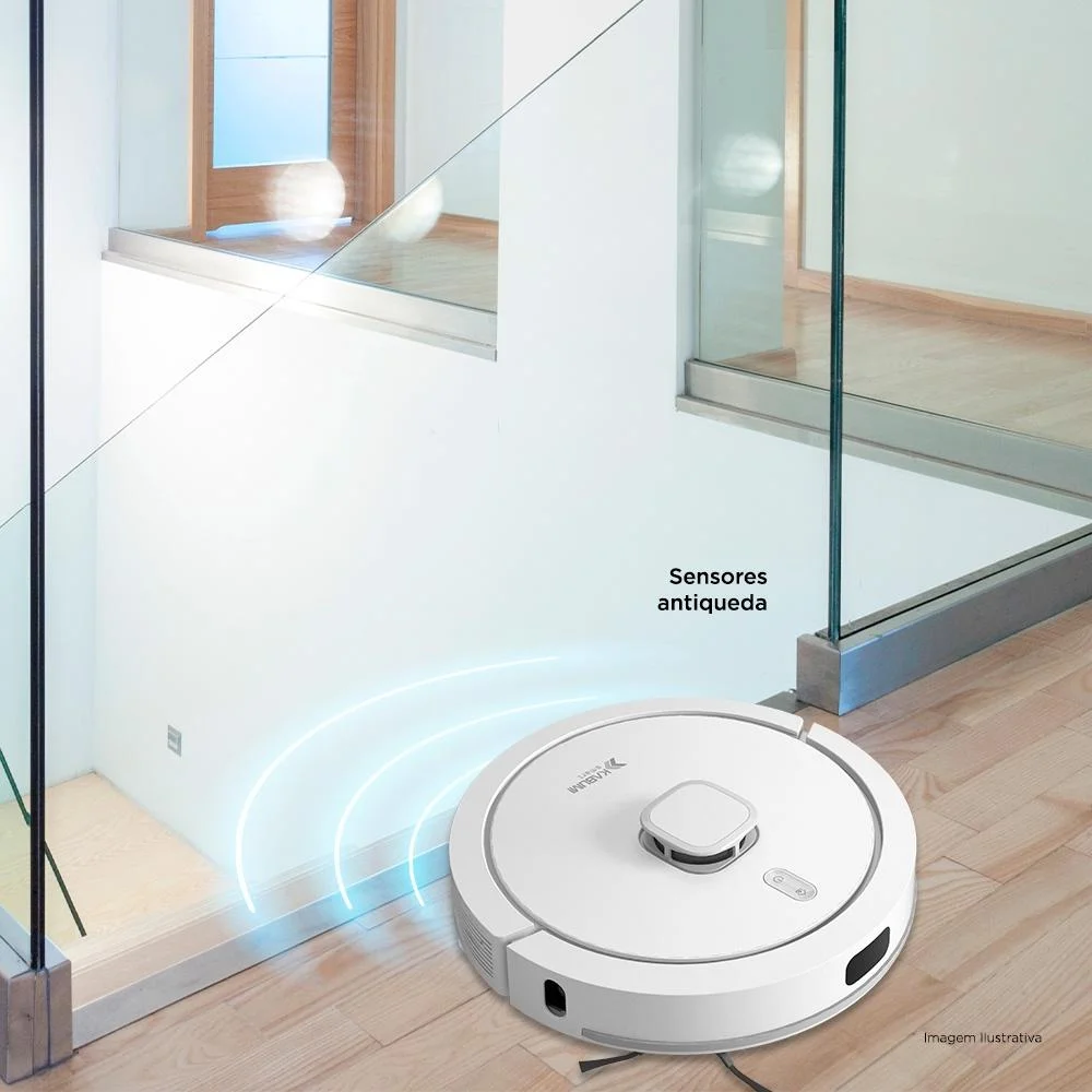 O Robô Aspirador KB! Smart 900 conta com uma tecnologia de mapeamento ToF 360°, com sistema anti impacto, que evita colisões com outros objetos, além de ser construído com 4 sensores anti-queda, para evitar que ele caia de escadas ou ambientes mais altos.